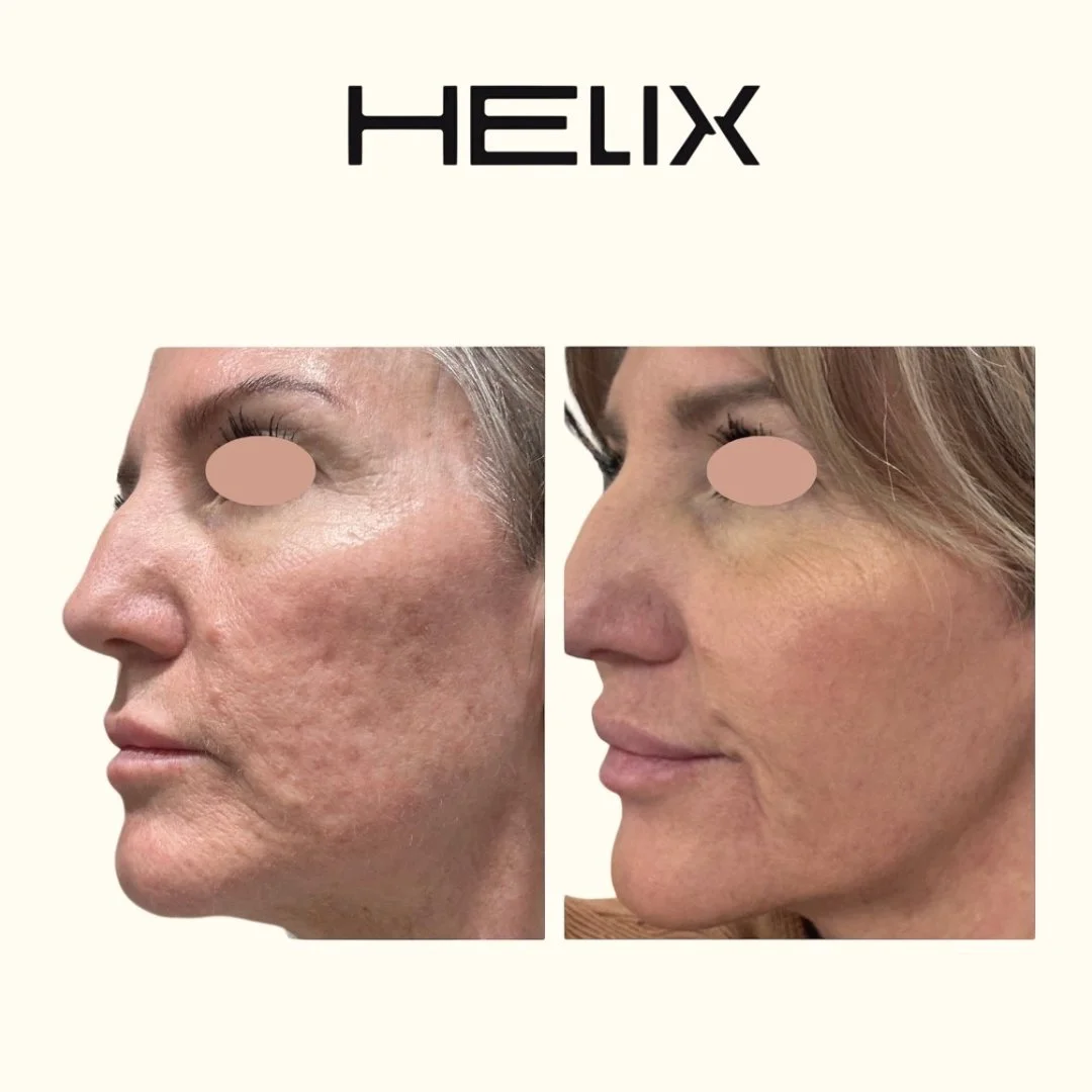 Before and after images showing skin improvement through HELIX treatment.
